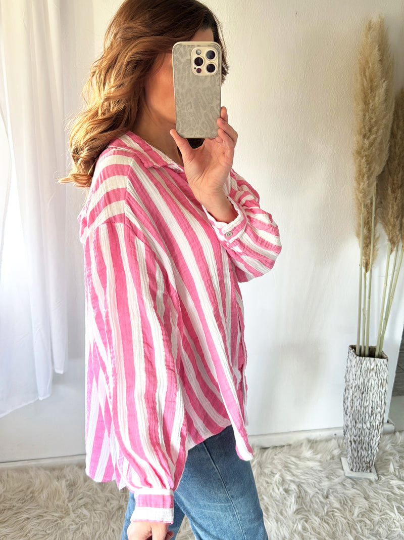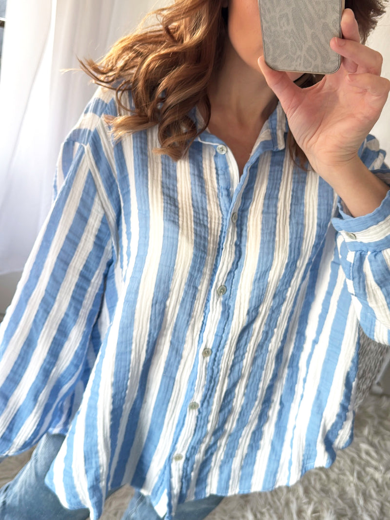 Musselin Bluse Block Stripes