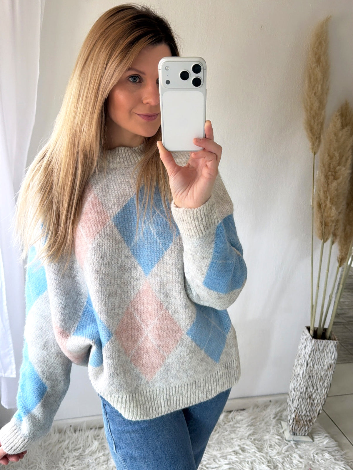 Oversize-Strick mit angesagtem Rauten-Design – super weich, bequem und perfekt für jeden Tag 🤍