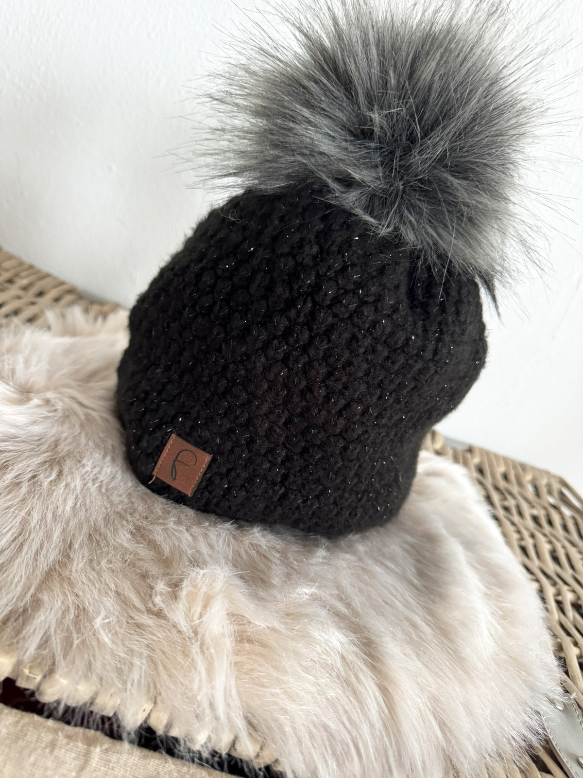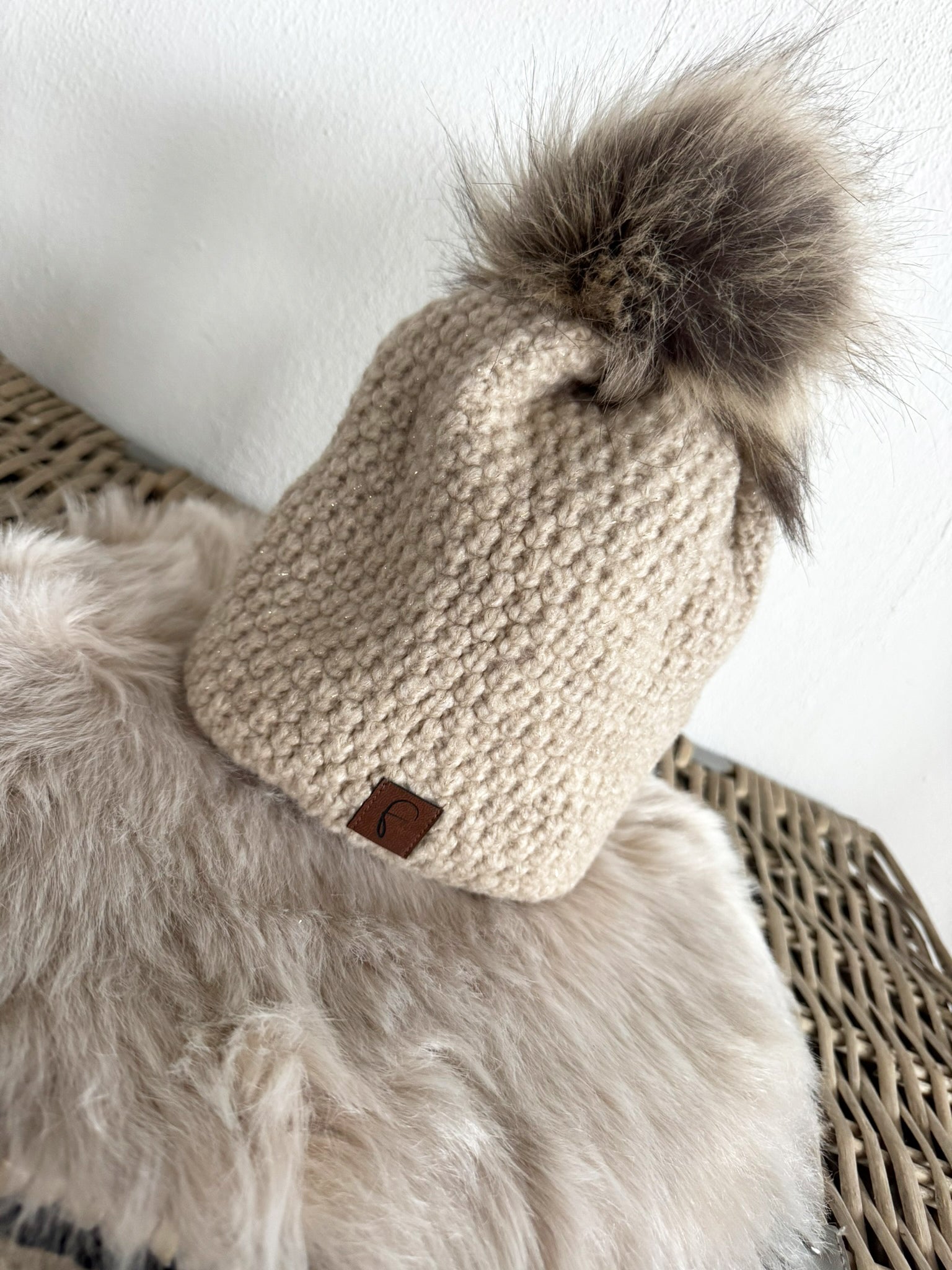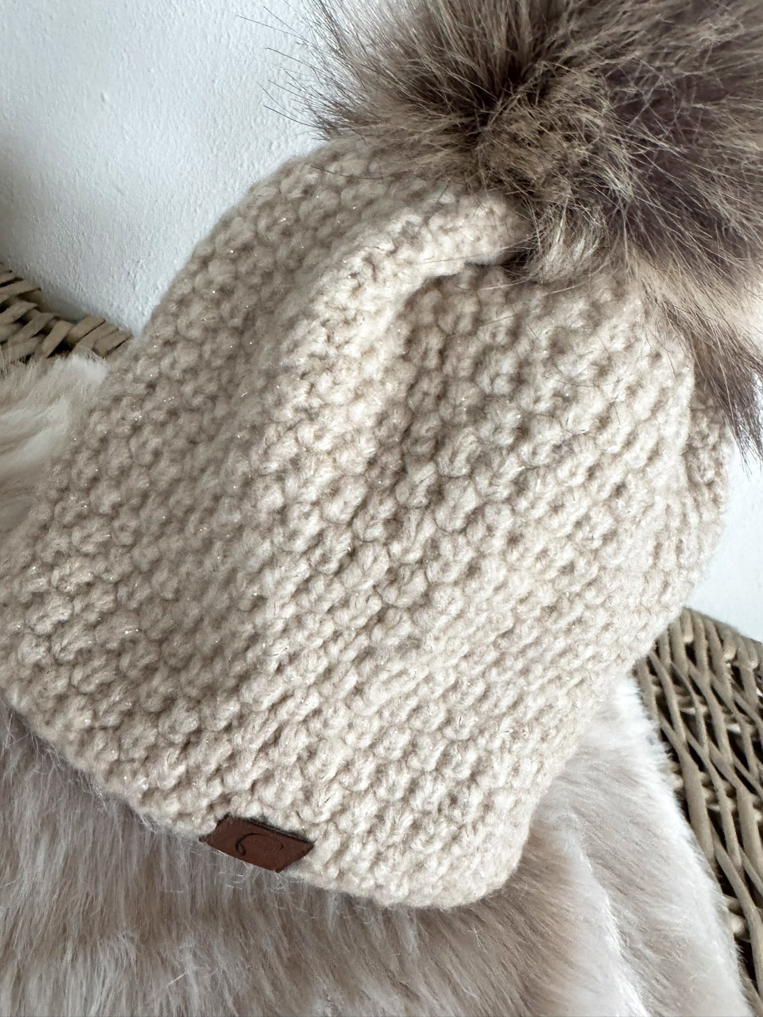 Mütze grob gestrickter Look mit dezenten Glitzerfäden