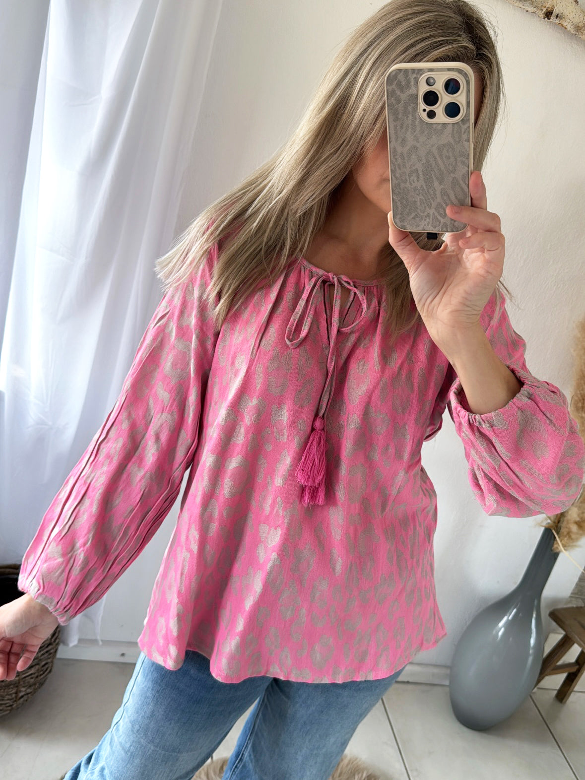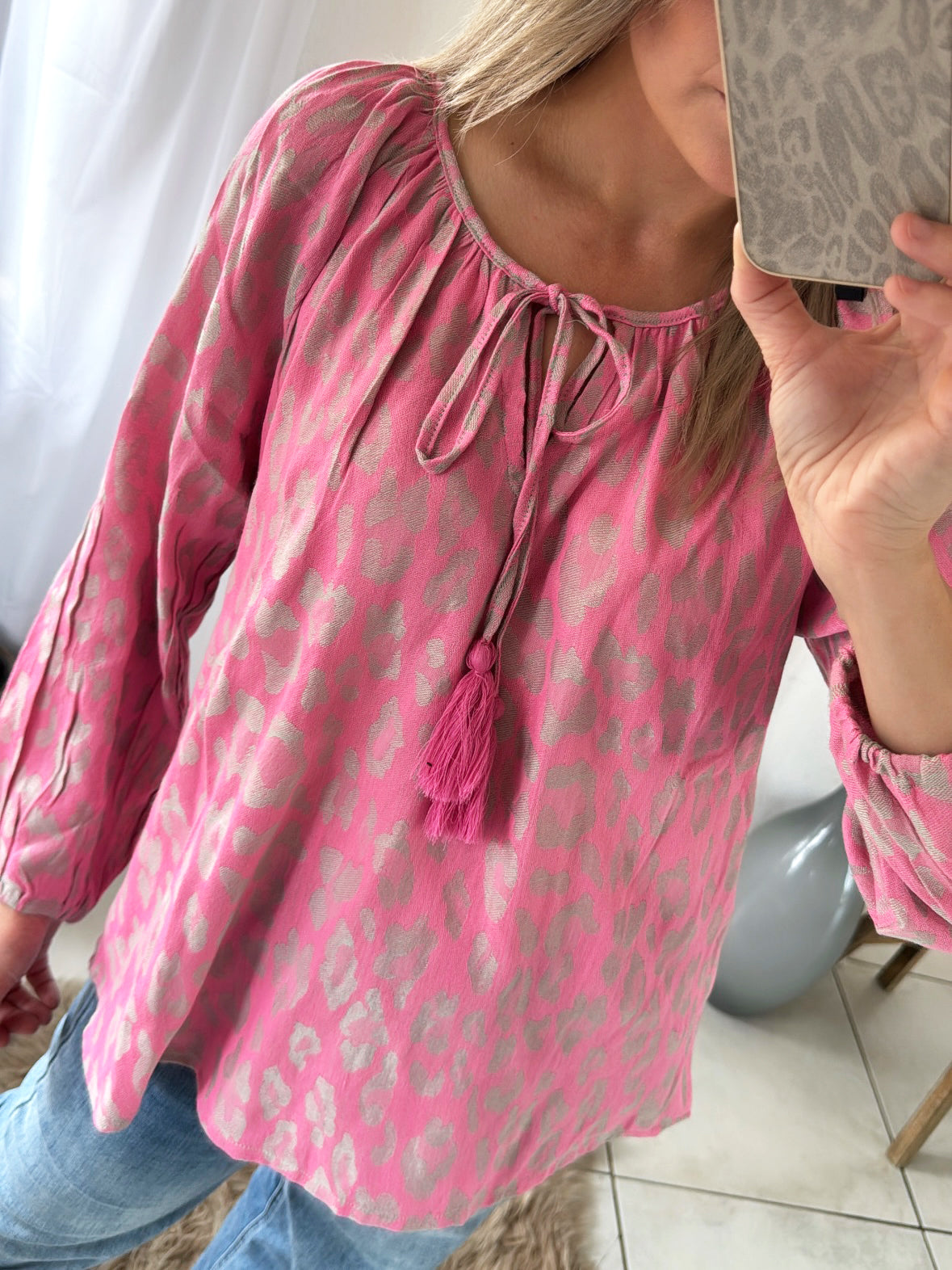 Bluse mit edlem Leo-Jacquard – hochwertig eingewebt, kein Druck