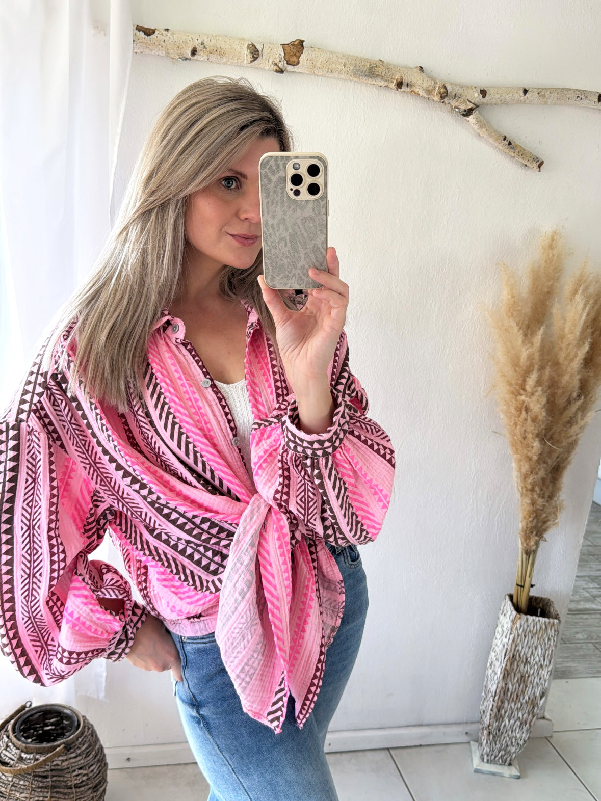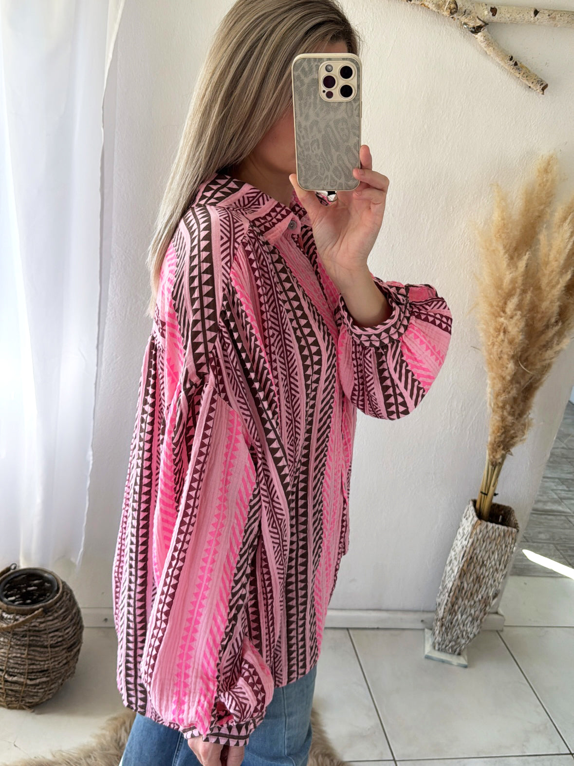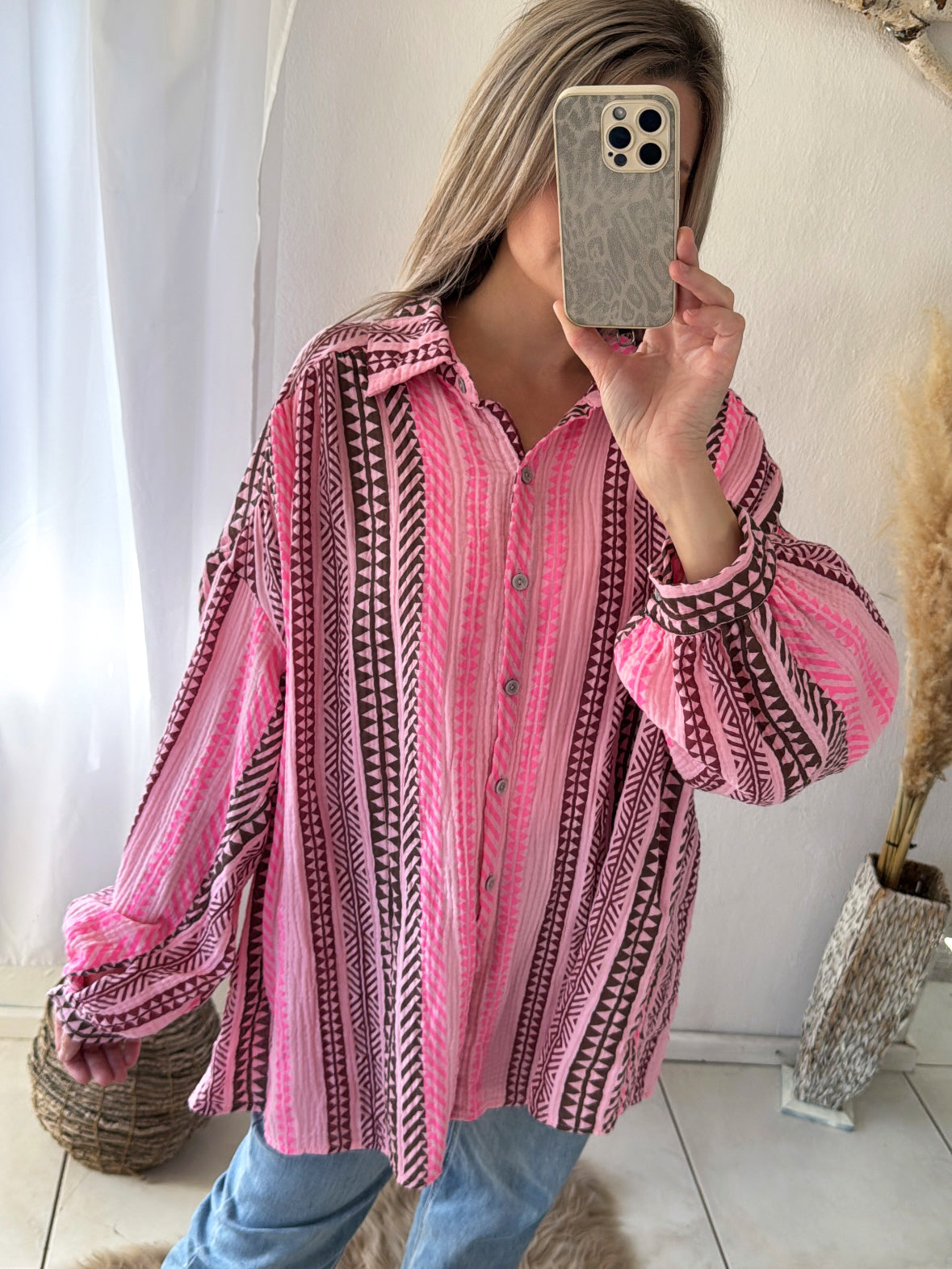 Musselin Bluse angesagter Boho-Look mit charakteristischem Ethno-Muster