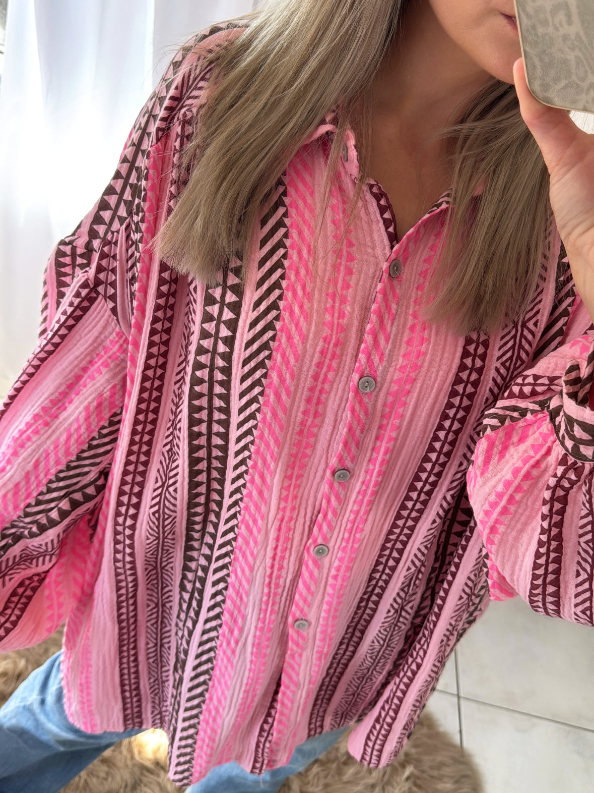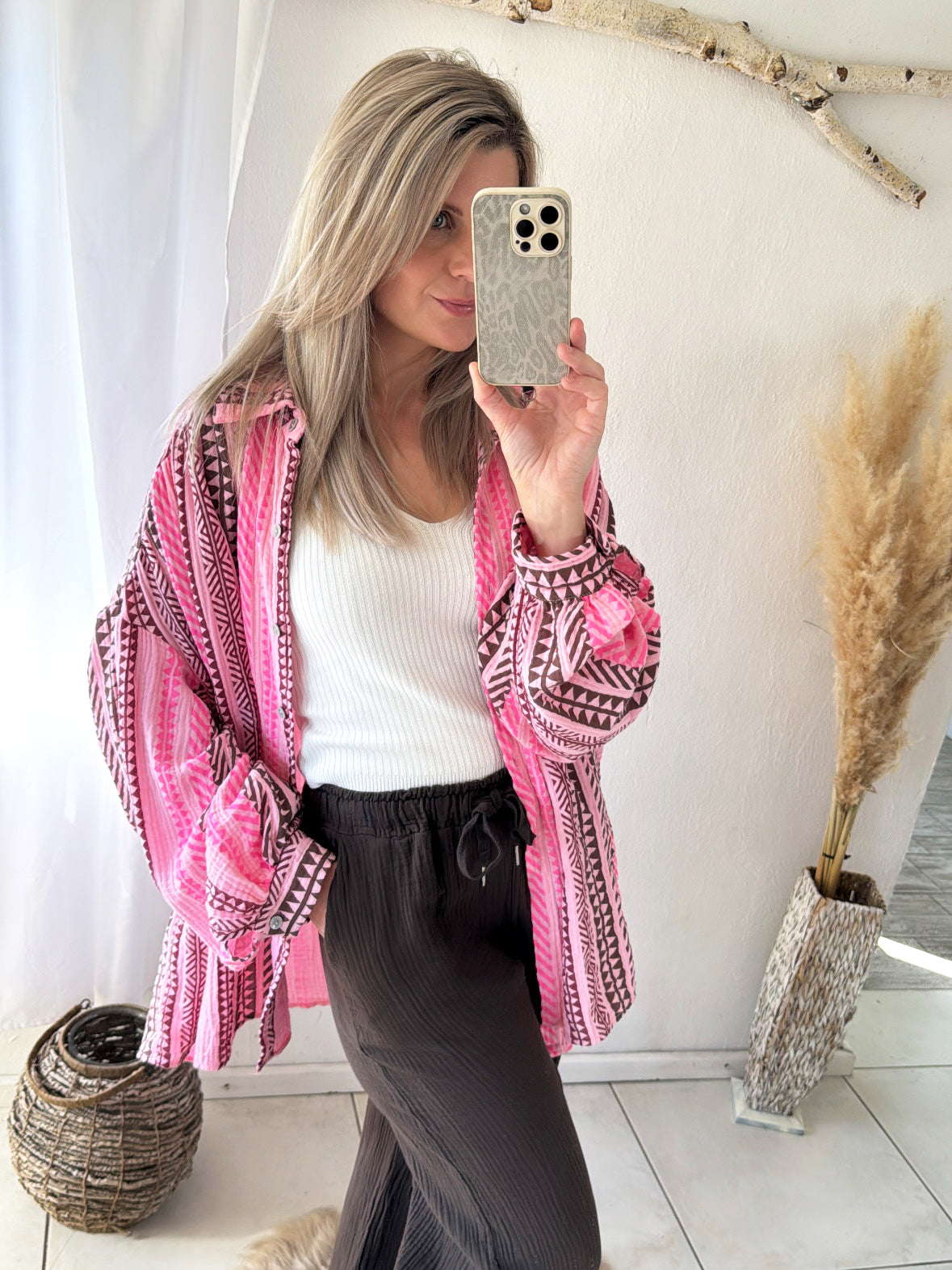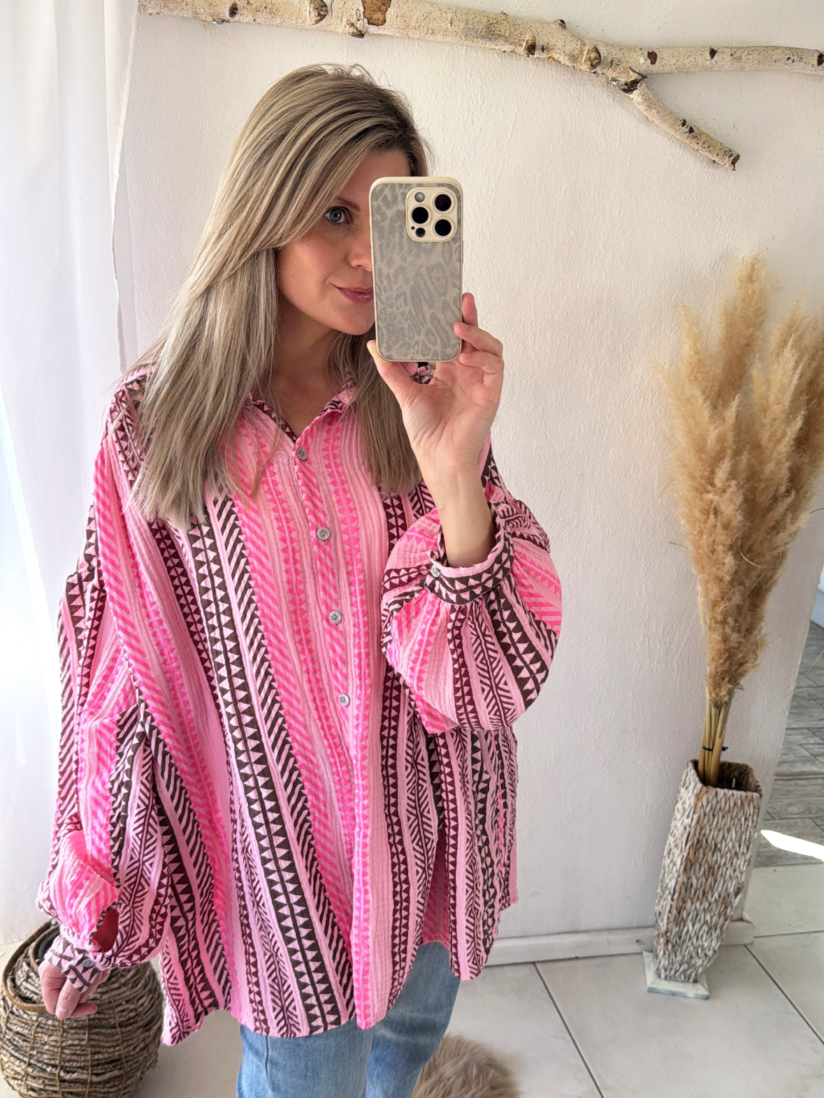 Musselin Bluse angesagter Boho-Look mit charakteristischem Ethno-Muster
