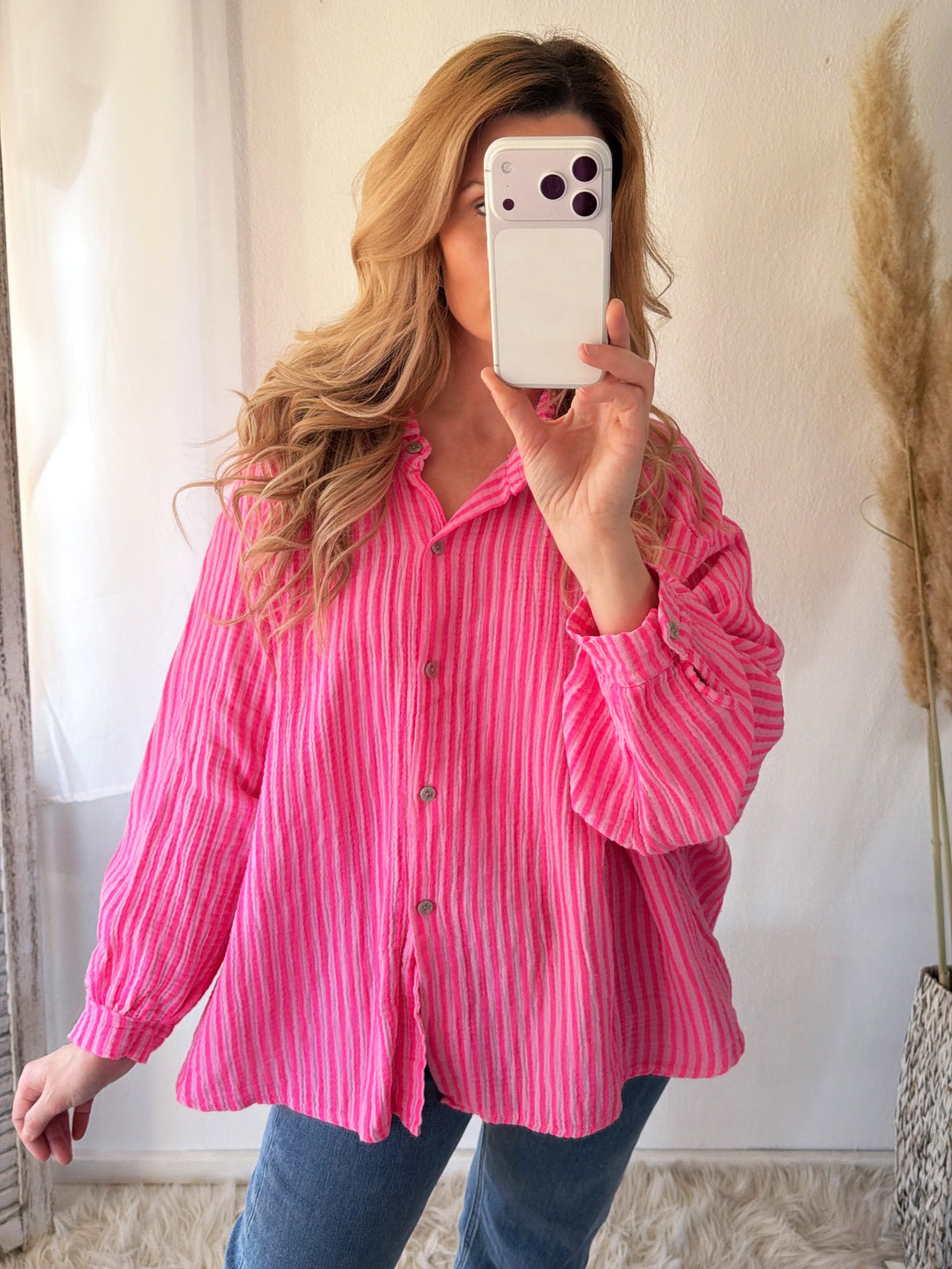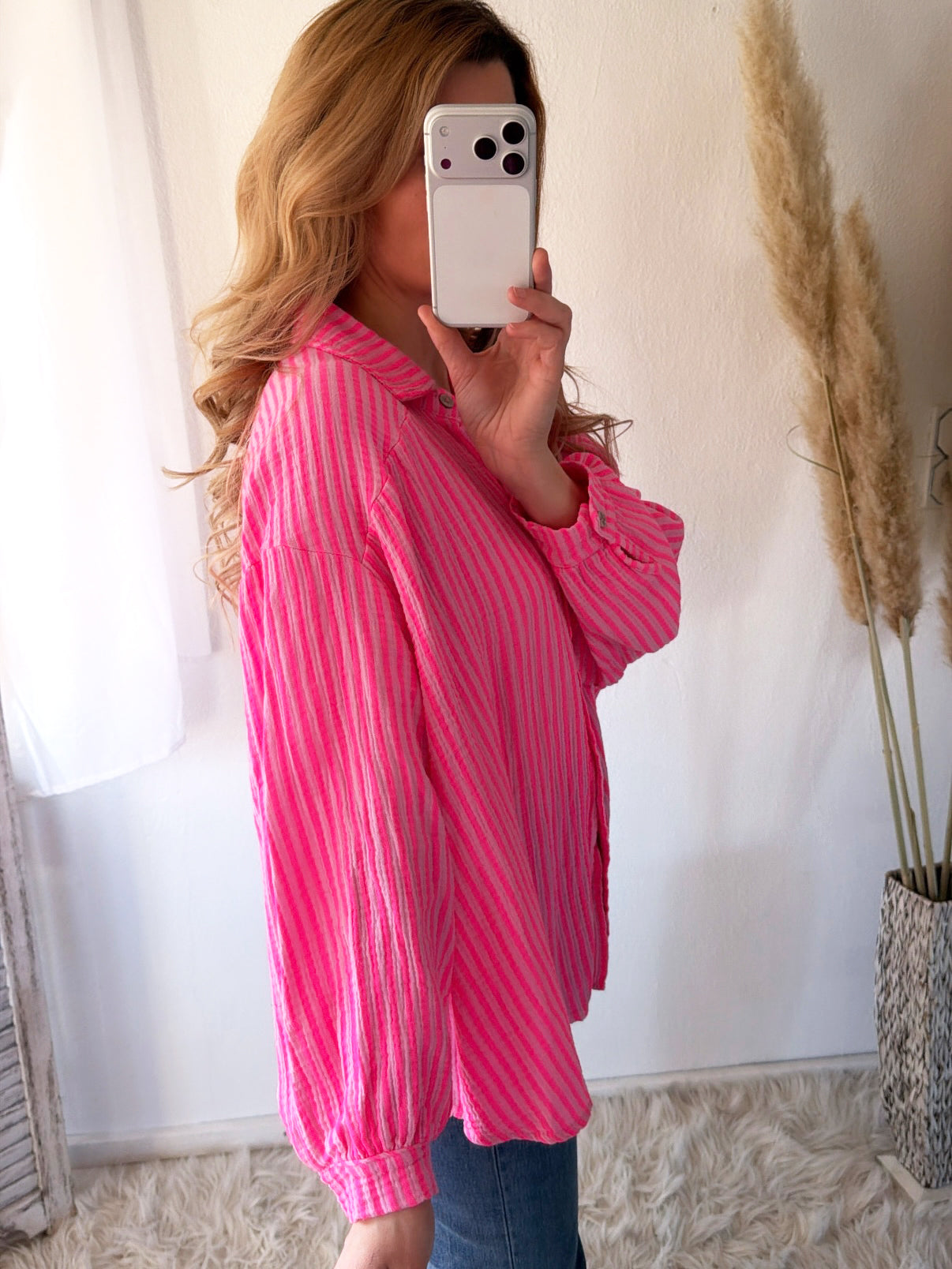 Musselin Bluse Oversize Soft Stripes