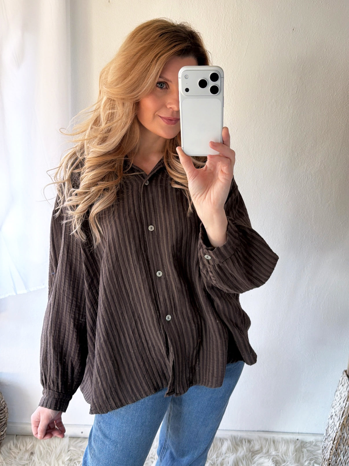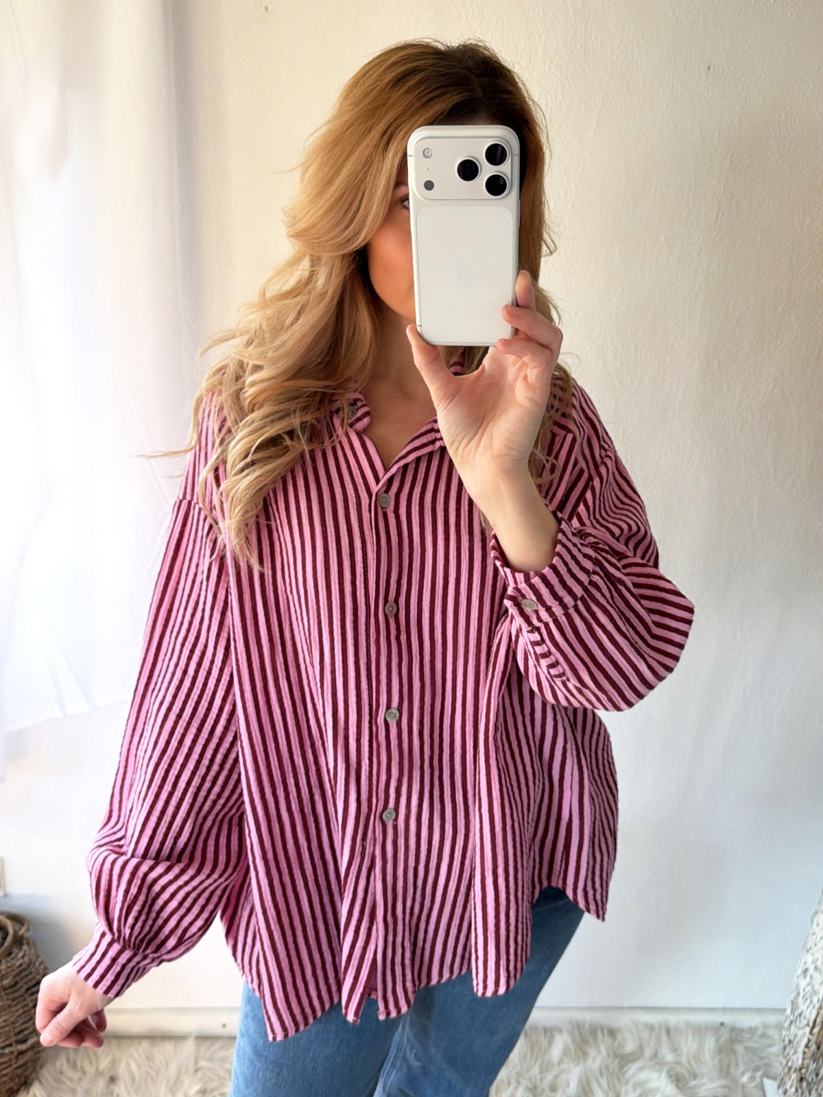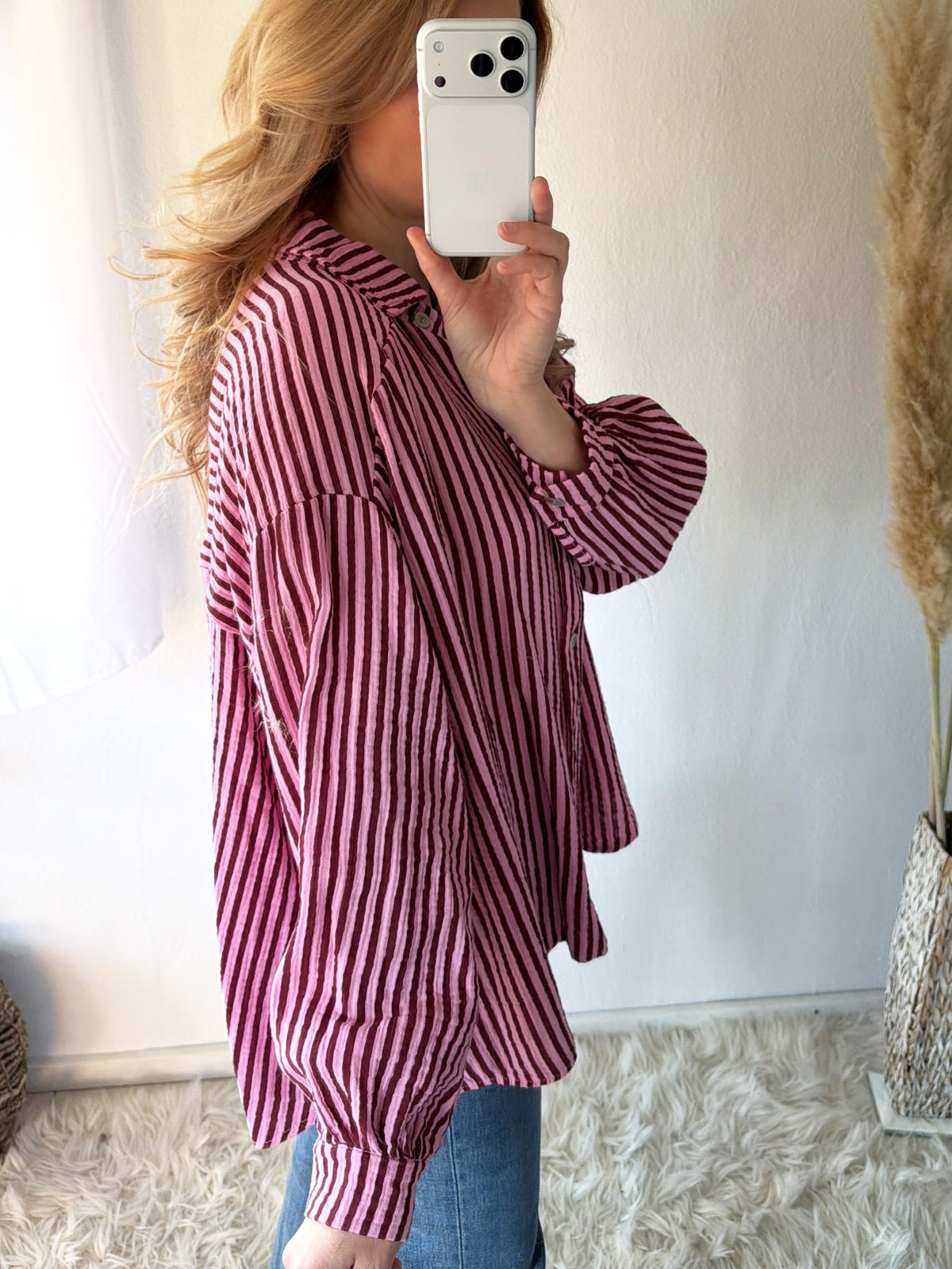 Musselin Bluse lässiger Oversize-Schnitt mit modischem Streifen-Design