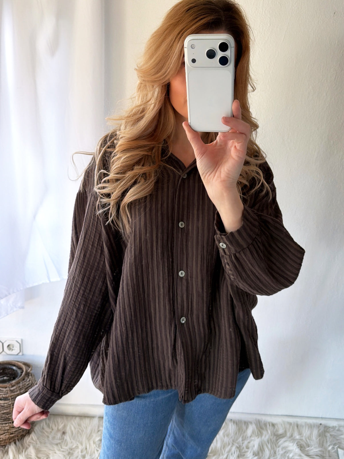 Musselin Bluse Oversize Soft Stripes