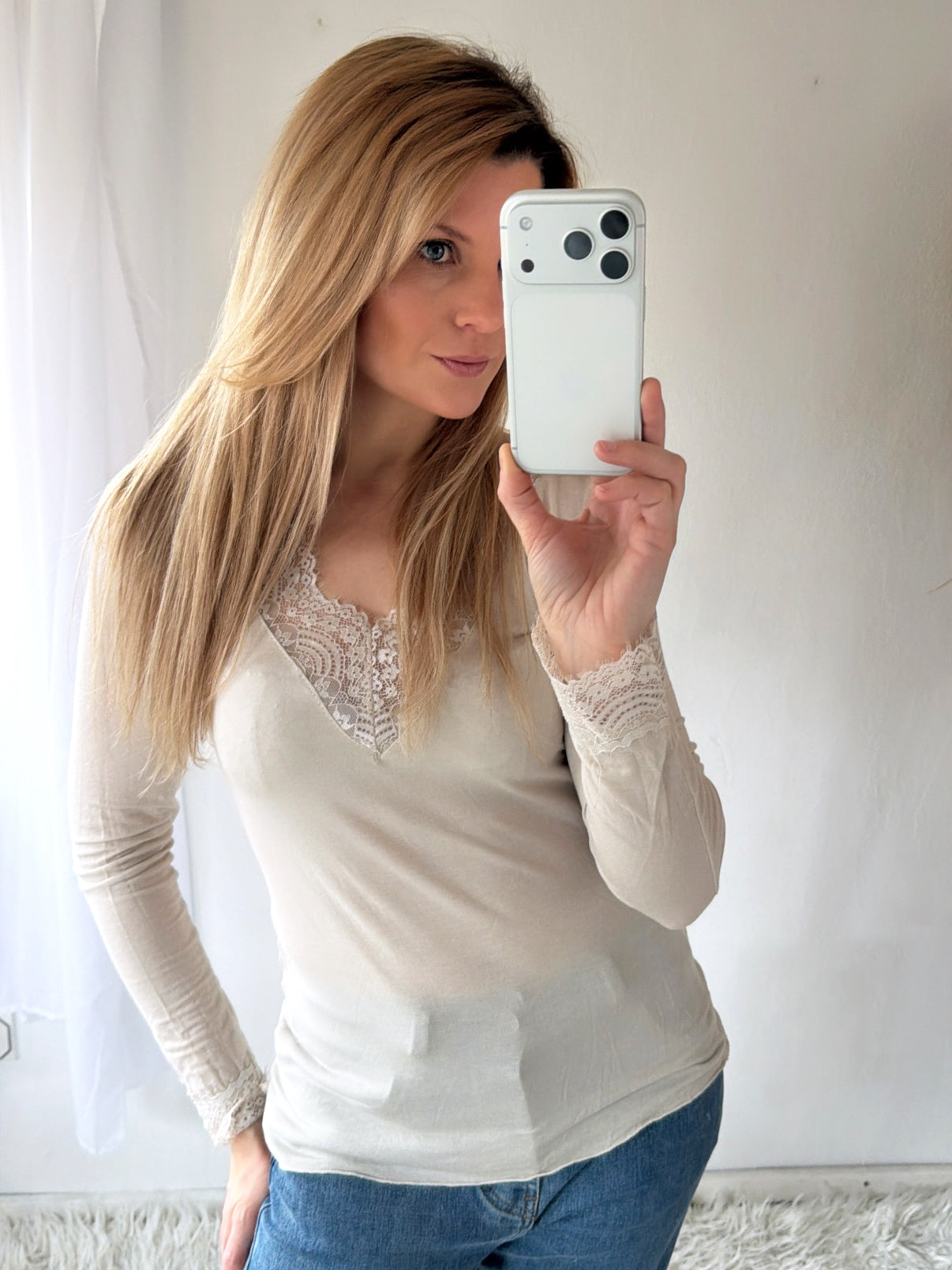 Shirt Kaschmir mit Spitze