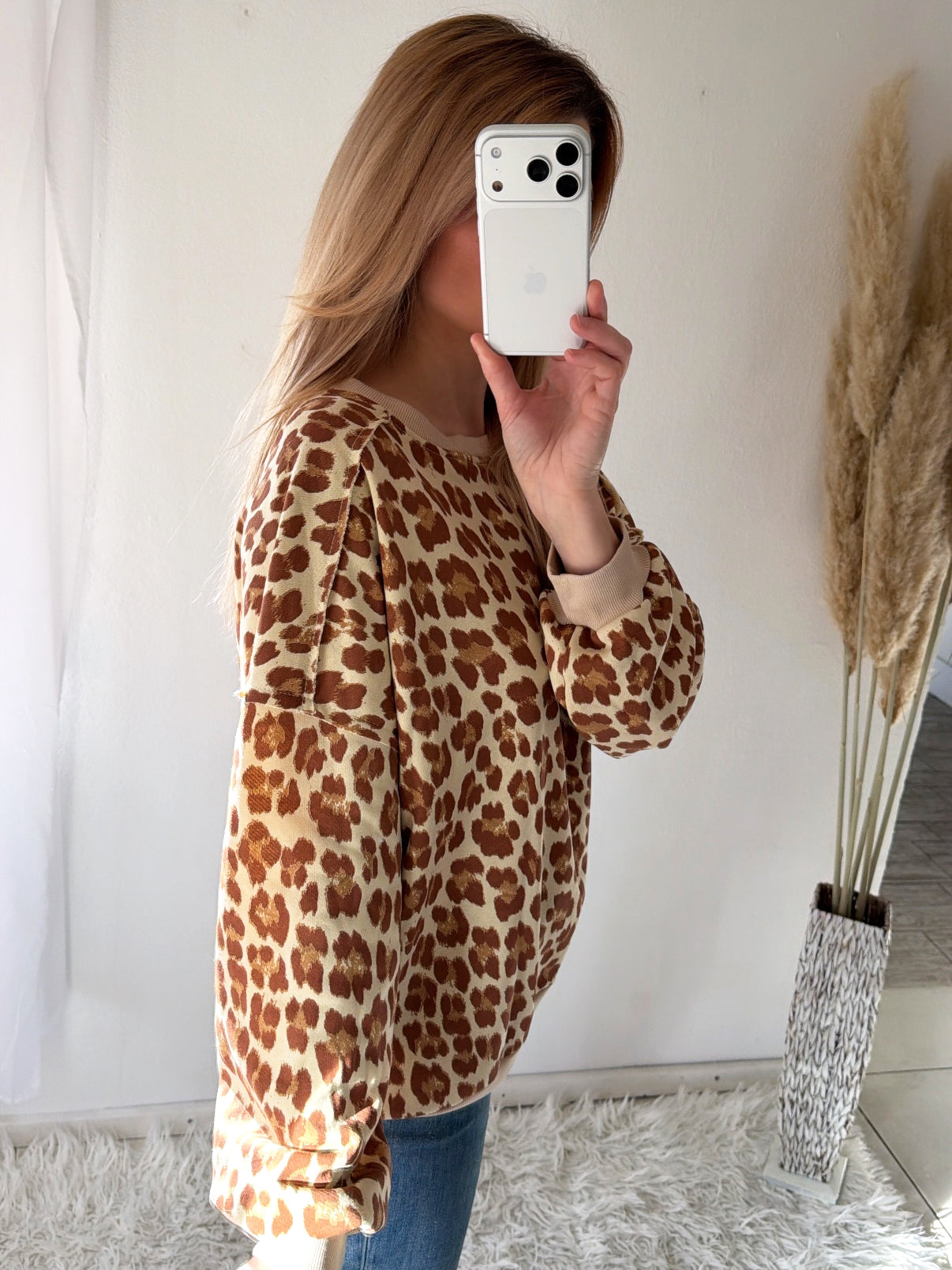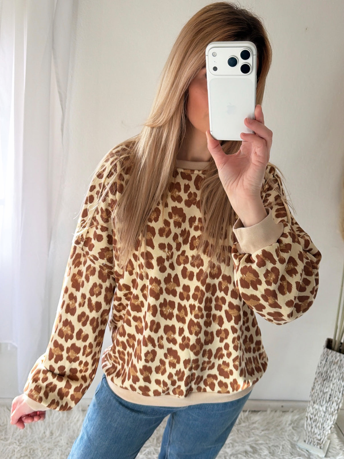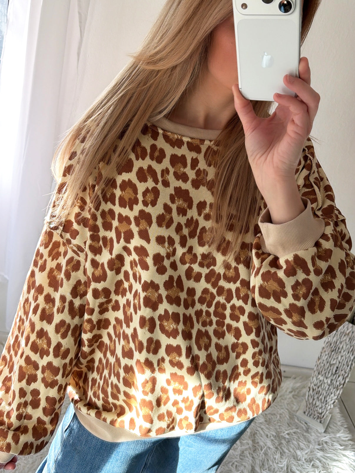 Sweatshirt moderner Leo-Print in warmen Braun- und Beigetönen