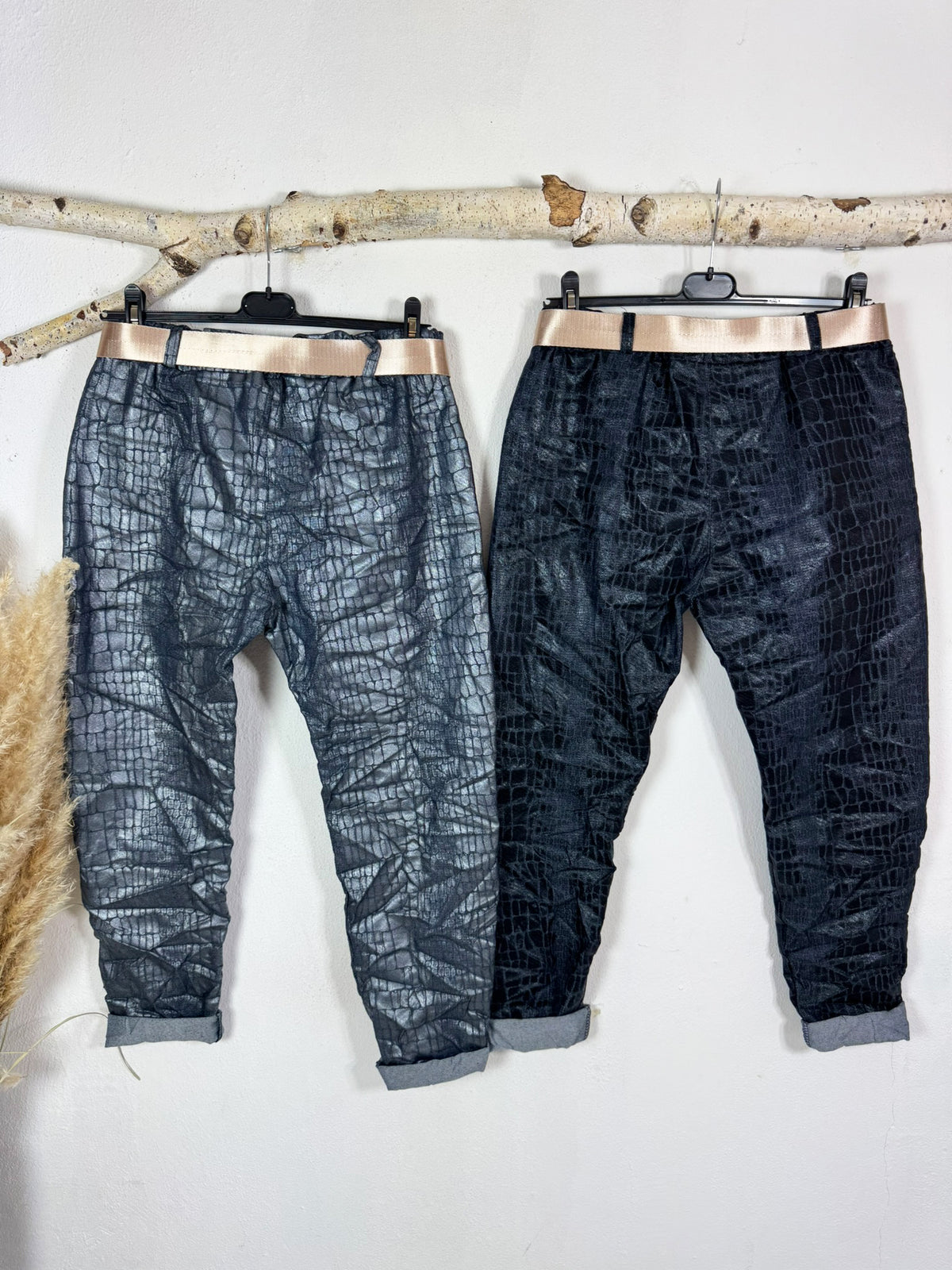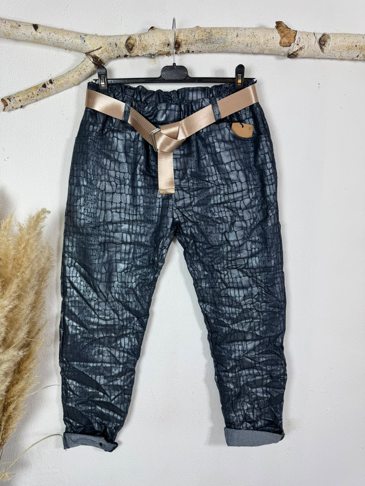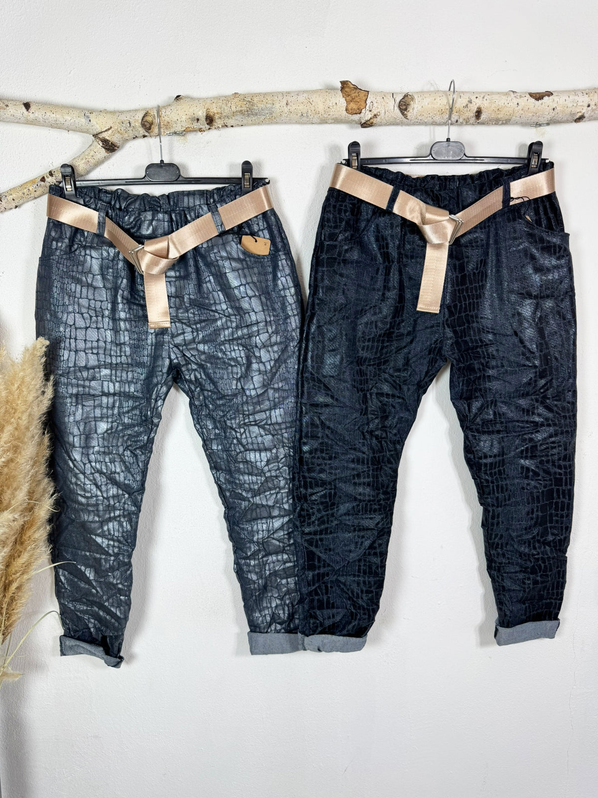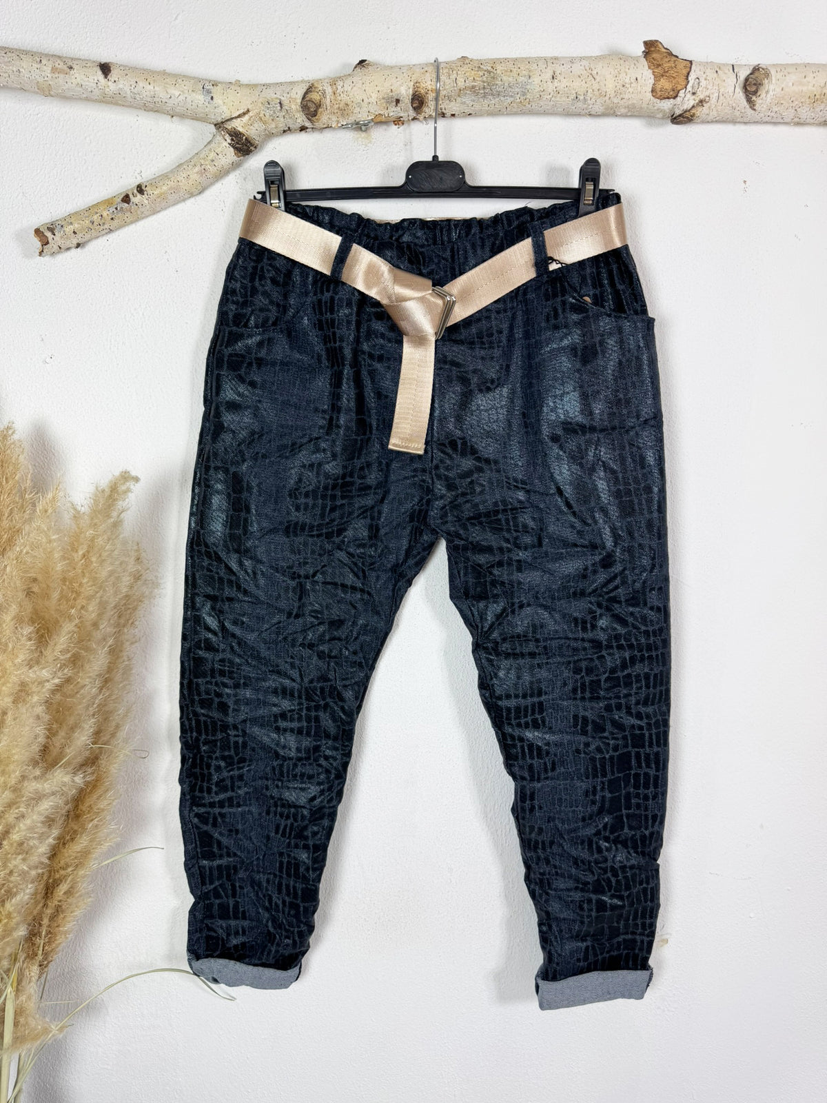 Eleganter Krokolook mit auffälligem Glitzergürtel