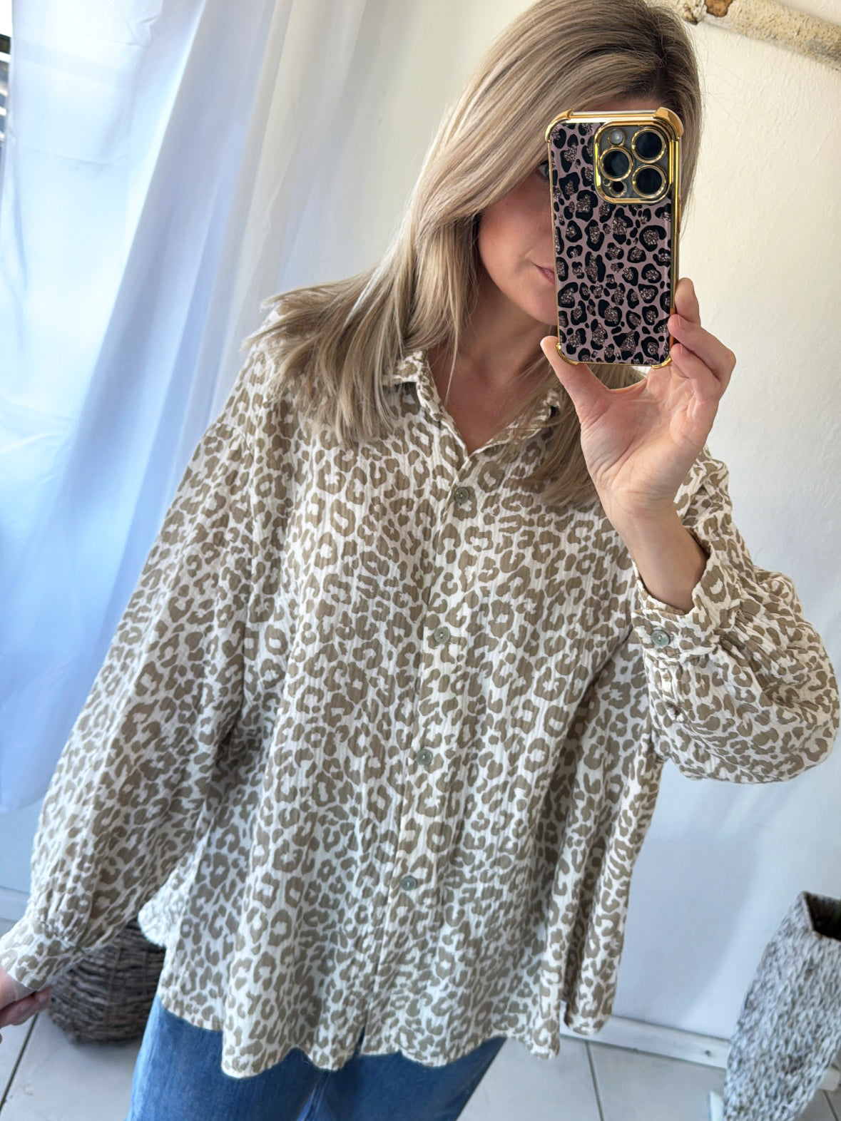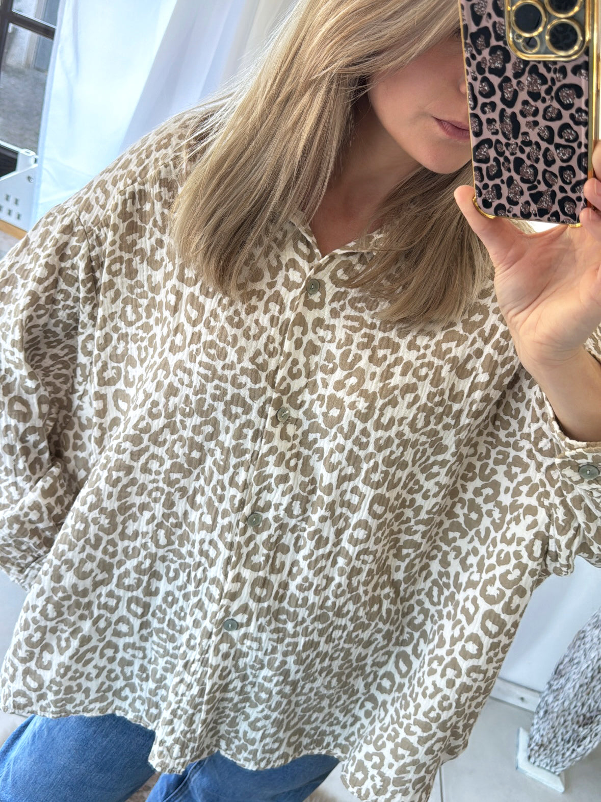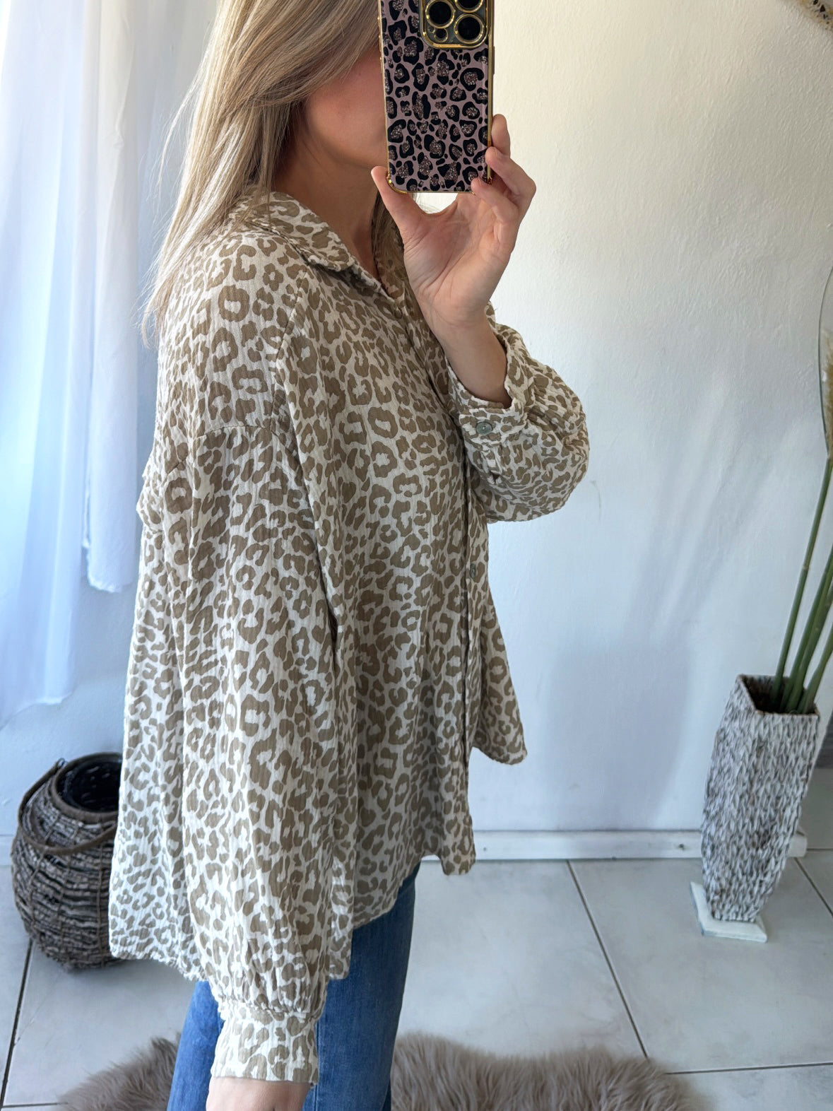 Musselin Bluse Oversize Soft Leo