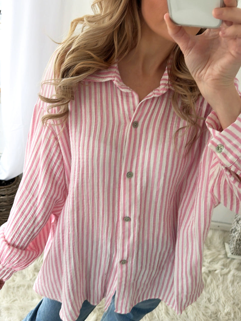 Musselin Bluse Oversize Soft Stripes