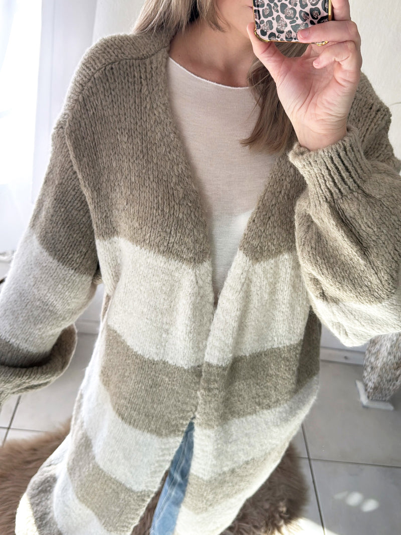 Long Cardigan Block Stripes