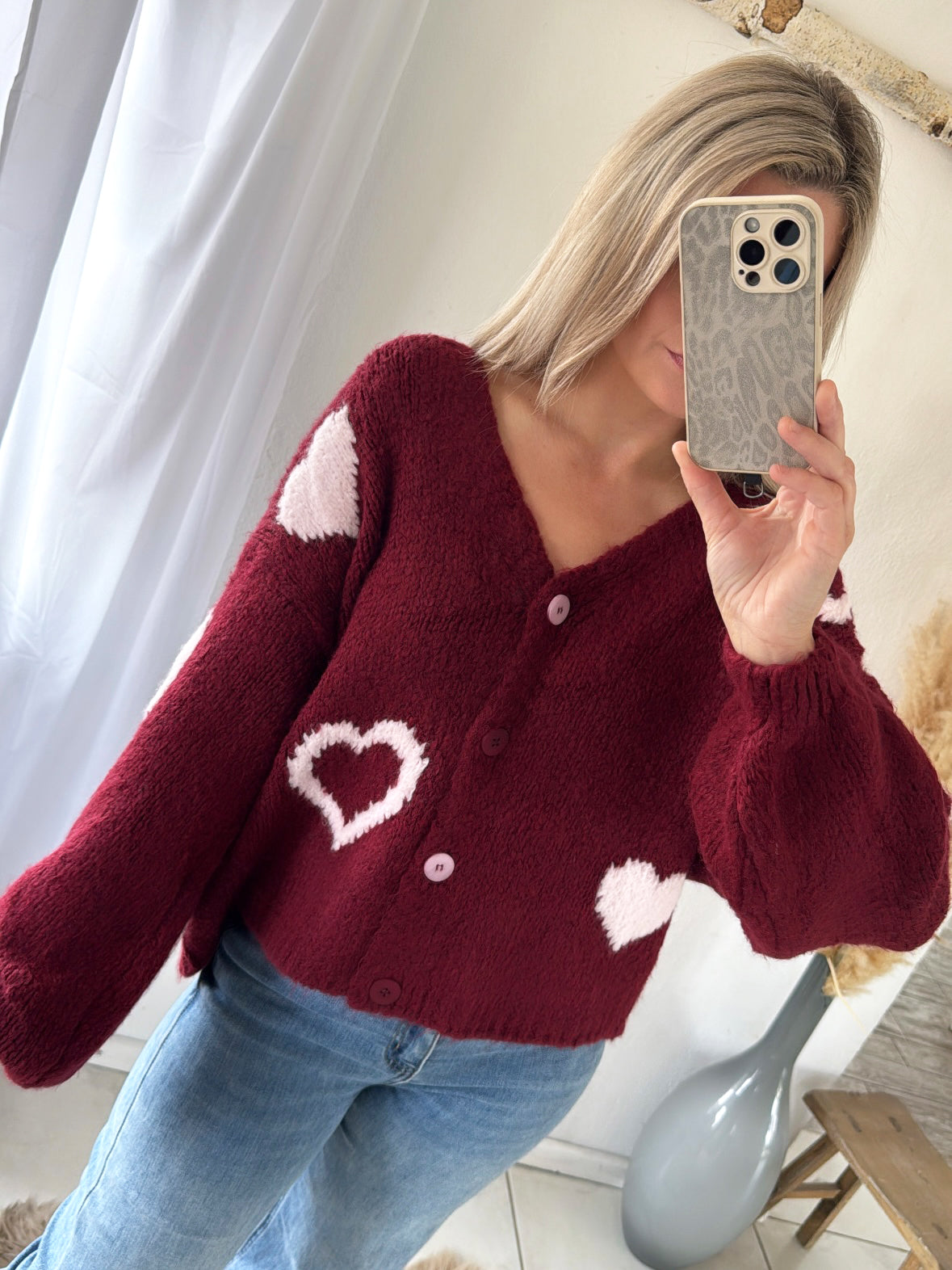 V-Ausschnitt mit auffälligen Knöpfen in Kontrastfarbe