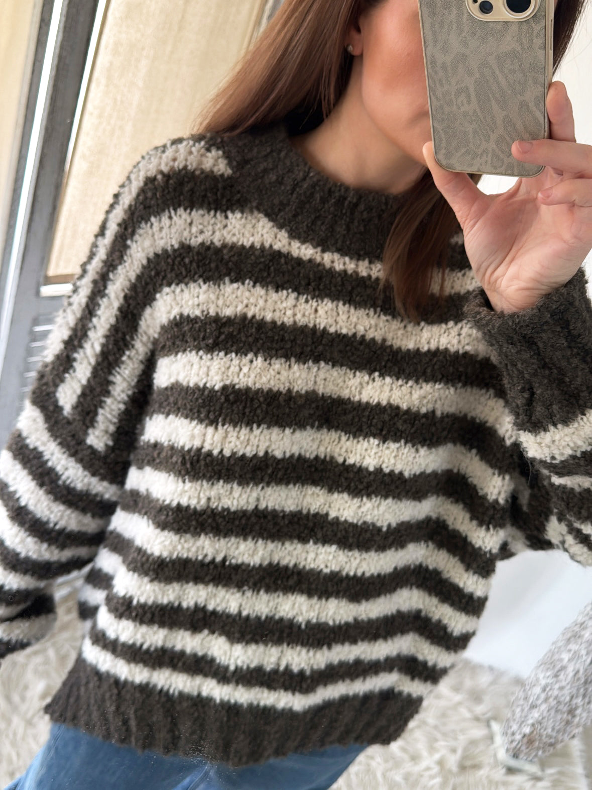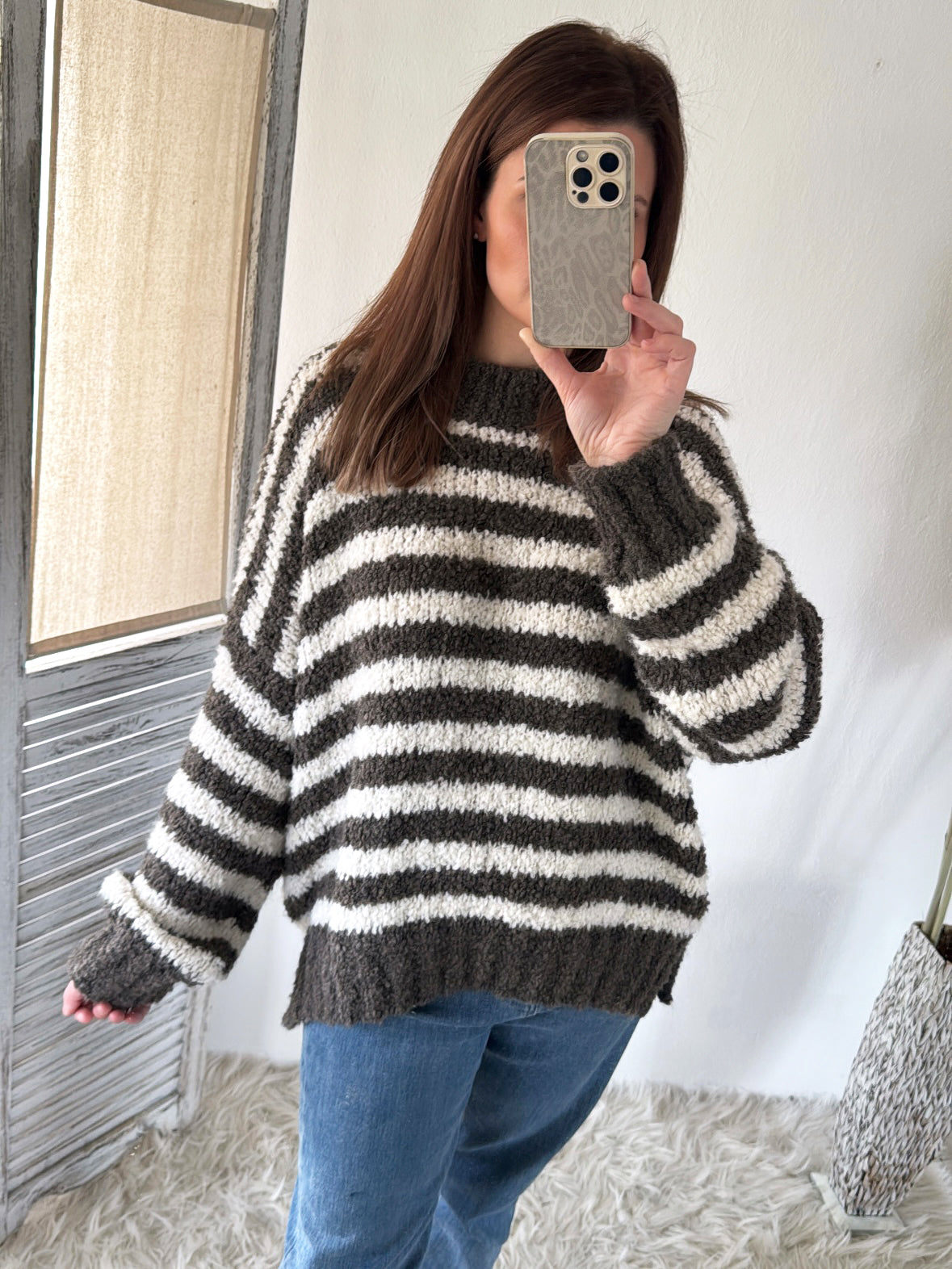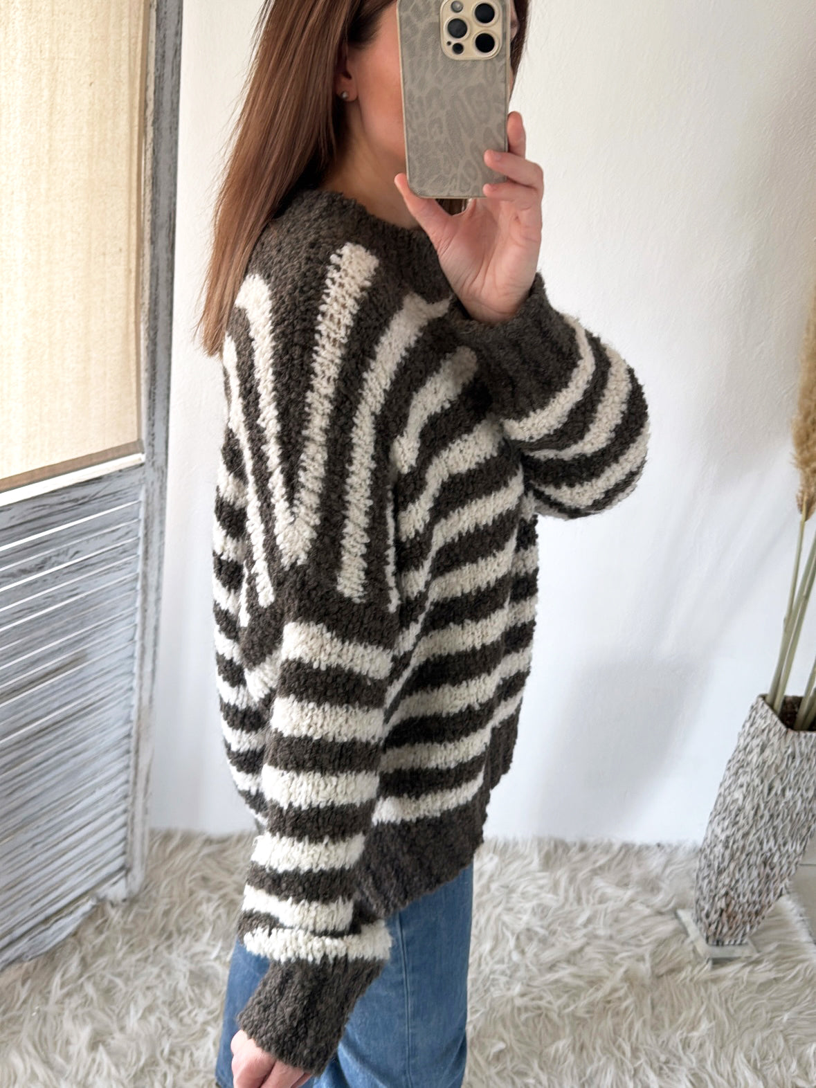 Pullover kuschelig-weicher Bouclé-Strick mit modischem Streifenmuster