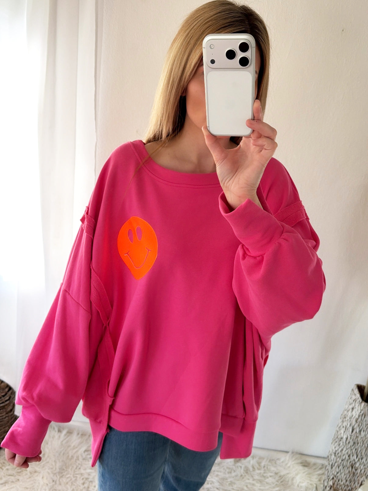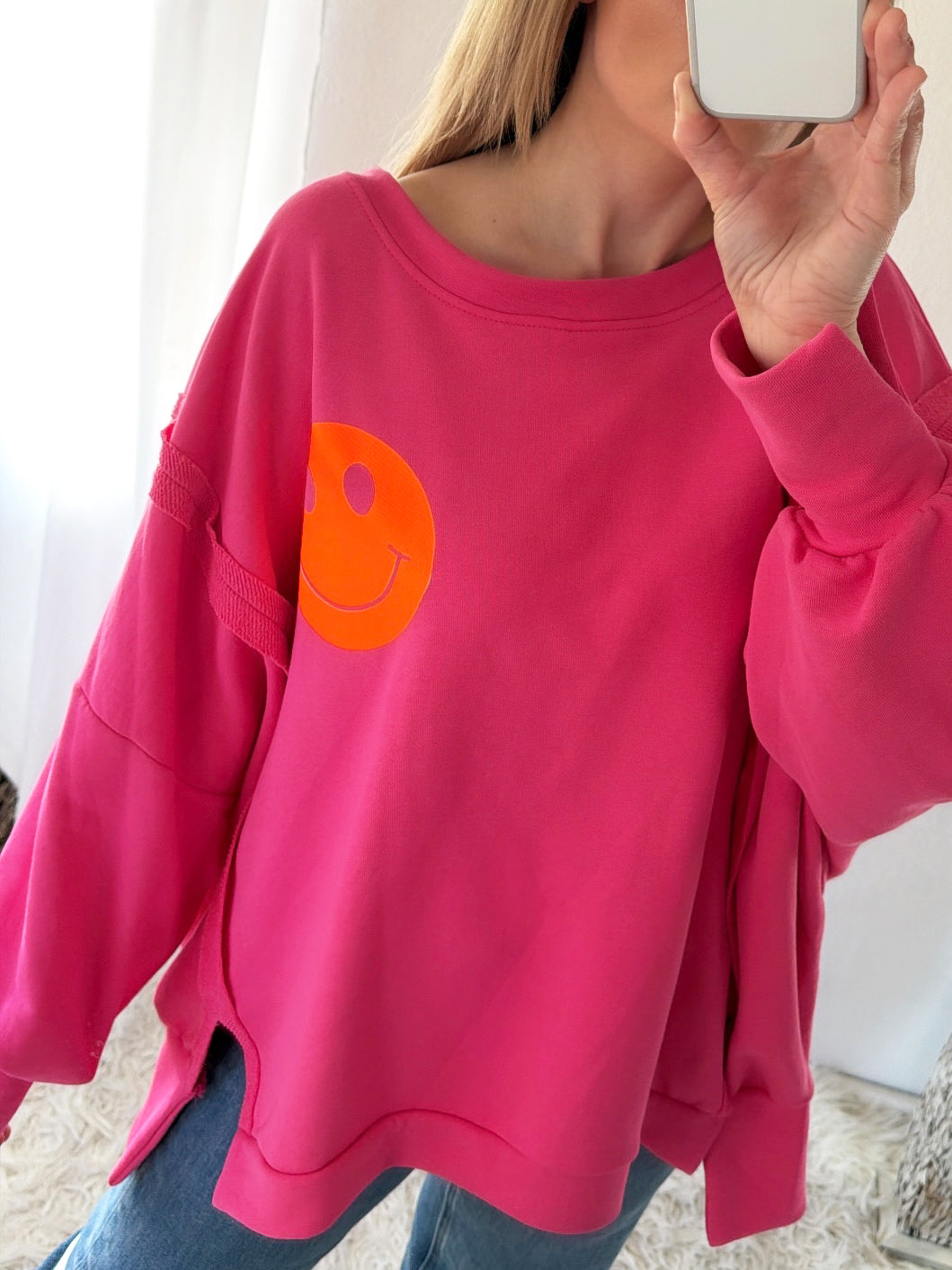 Auffälliger Neon-Smiley-Print auf der Vorderseite für gute Laune